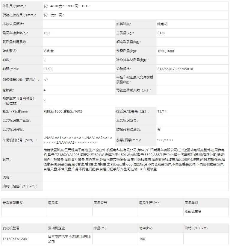 根据工信部曝光的信息来看,改款埃安S在动力方面也是有所提升的,新车搭载永磁同步电机,额定功率60kW(81Ps),最大功率150kW(204Ps),动力电池是由中航锂电提供的三元锂离子电池。