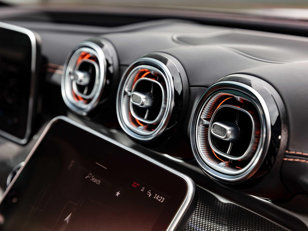 圆角矩形的空调出风口是全新C级内饰的亮点之一,内含与其他部位同色的氛围灯,说到玩灯,奔驰丝毫不亚于奥迪,并且在内饰氛围营造上比奥迪更出彩。