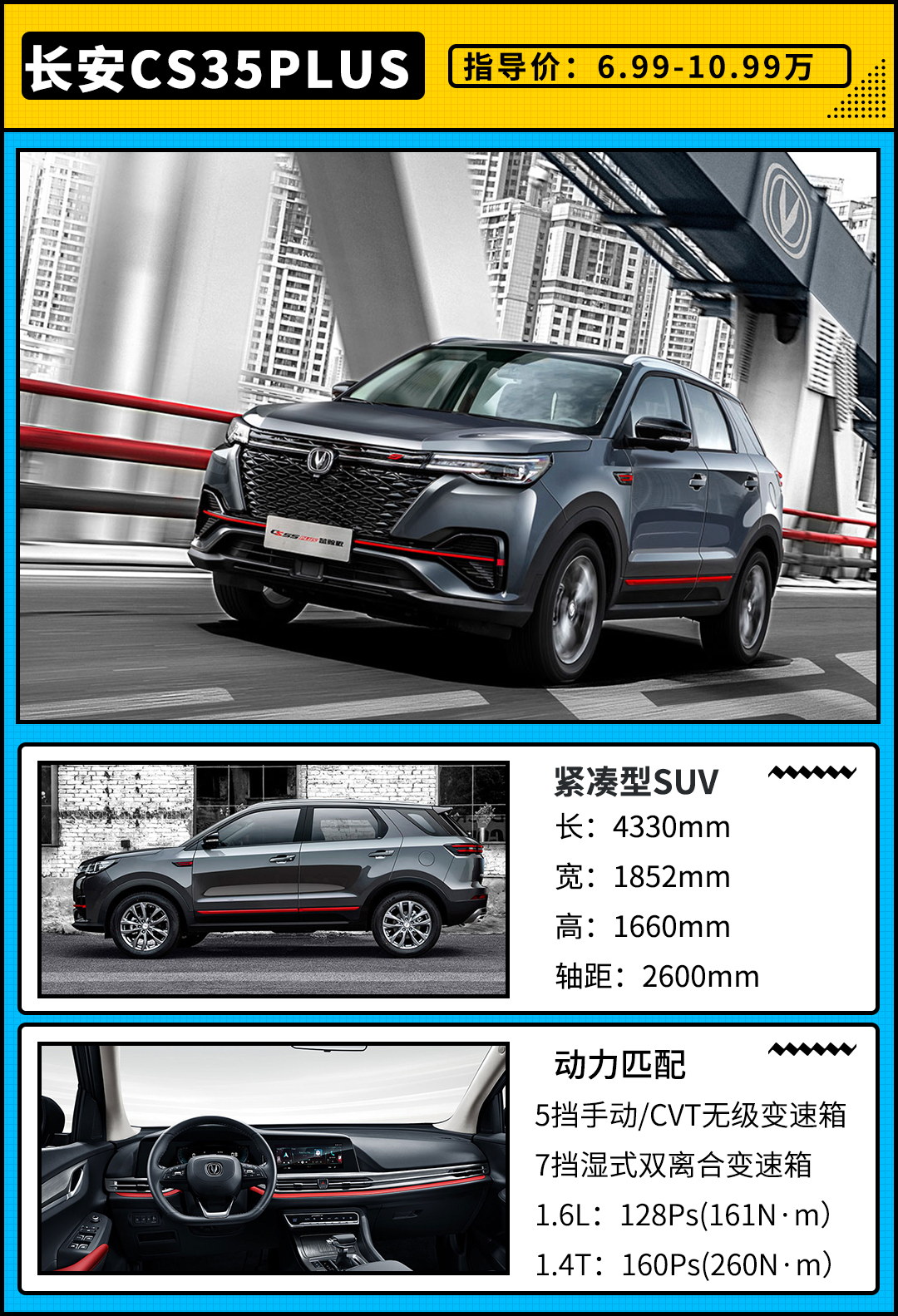 作为一款10万以内的小型SUV,长安CS35 PLUS在各方面做得非常均衡,日常使用的配置应有尽有,宽敞的空间、舒适的调教取向、较低的油耗表现;加上蓝鲸1.4T发动机的加持,让长安CS35 PLUS保持年轻时尚的活力,符合年轻消费者用车需求。