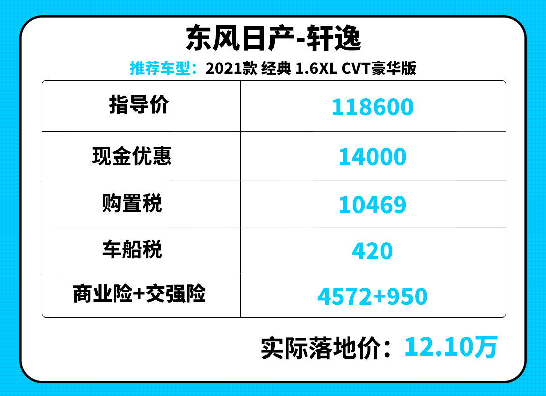 大体技术基本相同,加上更低的售价和更高的优惠,大多数轩逸的潜在客户还是愿意放弃动力上的提升来选择更好的配置和更低的价格,CVT豪华型作为轩逸·经典的顶配版本,实际裸车价仅10.46万元,加上保险和购置税等最终落地仅12.10万。12万落地顶配轩逸,技术稳定又省油,一个月卖4万+也不是不能理解。
