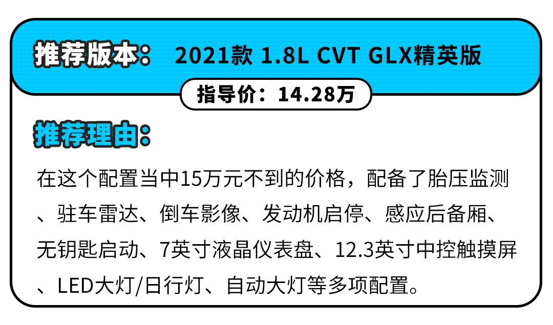 同样的,在动力方面共有两套动力总成可选,分别是1.8L+CVT最大马力143Ps以及1.5T+7DCT最大马力170Ps。动力数据中规中矩吧,但这并不妨碍它能够成为一台称职B级家用车,平顺省油才是关键!