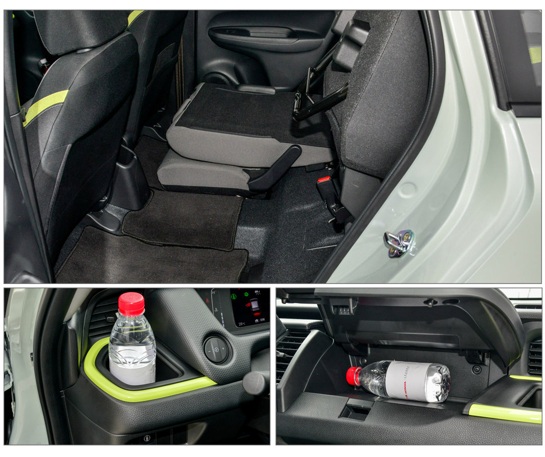 同时飞度最为人所熟知的自然是其强大的空间利用率,这不仅仅体现在乘坐空间上,像后排座椅的两种翻折方式,也为车辆提供了多样化的储物能力。同时中控区域两侧的杯架设计,副驾前方的储物柜造型,也都令飞度的空间利用率达到了一个全新的高度。