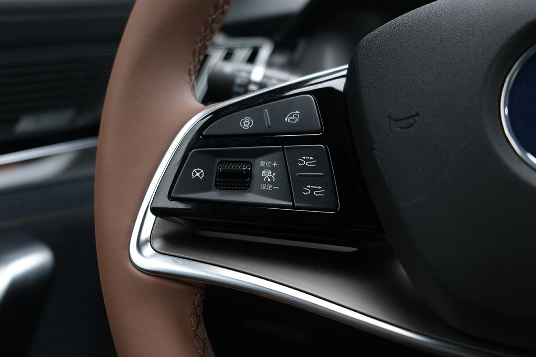 另外还配备了方向盘车道偏离辅助震动提醒,时速60km/h以上车辆快要偏离车道时,会通过声音和方向盘震动提醒驾驶员,因为试驾车是试装车,量产版车型会有车道保持,车辆可以短暂时间内接管方向。