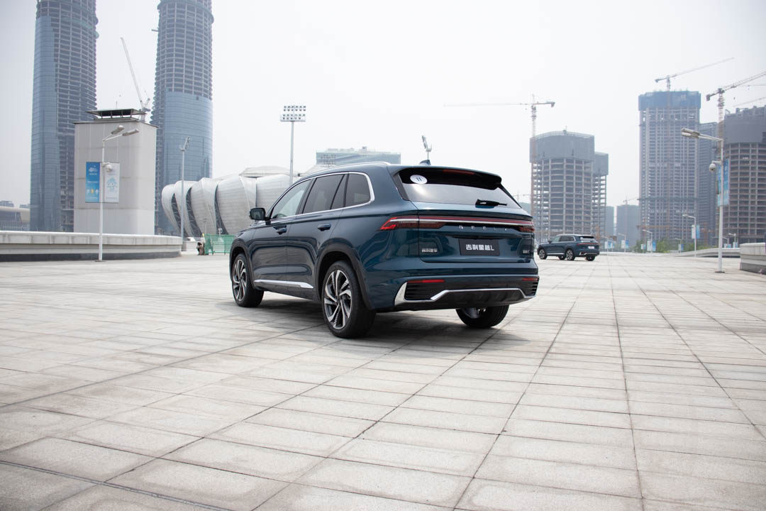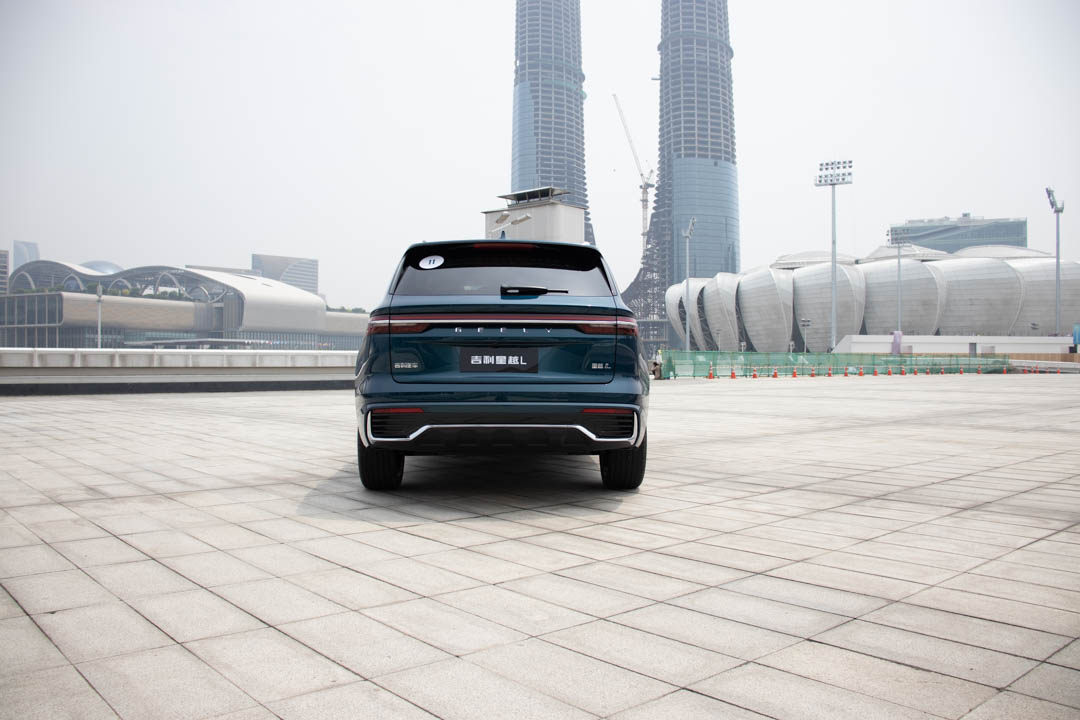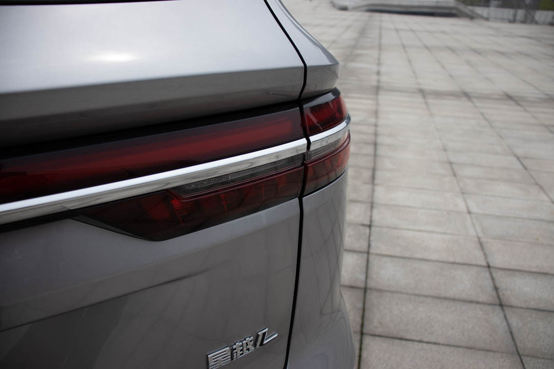 车尾部分,星越L首次加入了贯穿式的尾灯设计,并且灯带中嵌有一条镀铬饰条,吉利的英文logo”GEELY”排列在灯带下方。