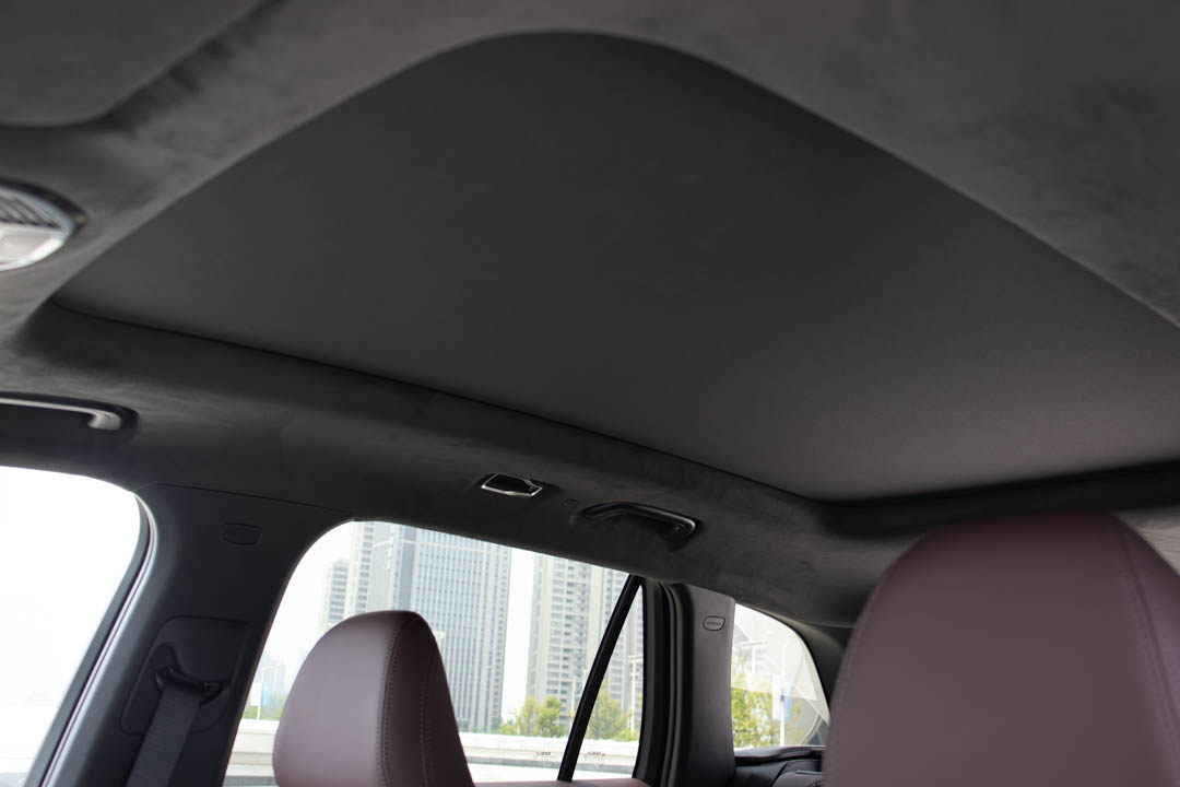 车顶有尺寸非常大的全景天窗,一直延伸至后座。值得一提的是,顶棚同样采用了麂皮的材质,不得不说在用料上星越L下足了本!