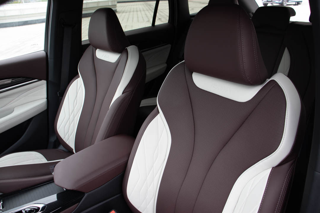 相比之下红白的内饰就好很多,不仅空间感开阔,车内温度也更低,而且打孔的皮质座椅更加透气。