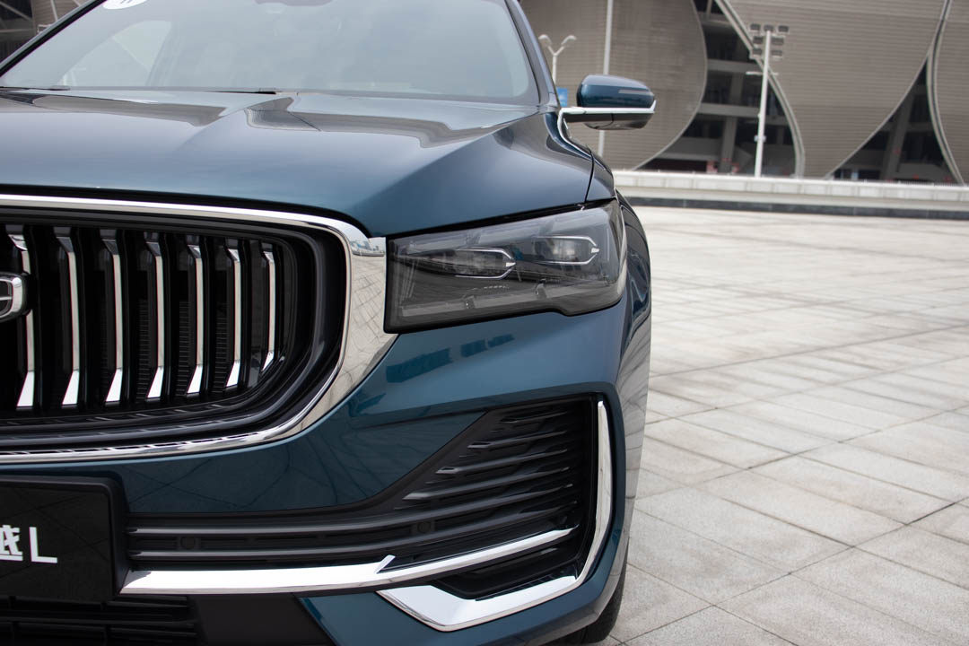 教授第一眼看到吉利星越L是的确被惊艳到了,家族式的直瀑式进气格栅尺寸更大,镀铬饰条也变得更粗壮,配合稍稍隆起的机盖线条,显得颇有力量感。大灯组也运用了全新的设计,官方称之为“能量矩阵大灯”,在这一价位能给到矩阵大灯的车型,是极其稀有的;上下三段式的日间行车灯,在点亮时辨识度很高。