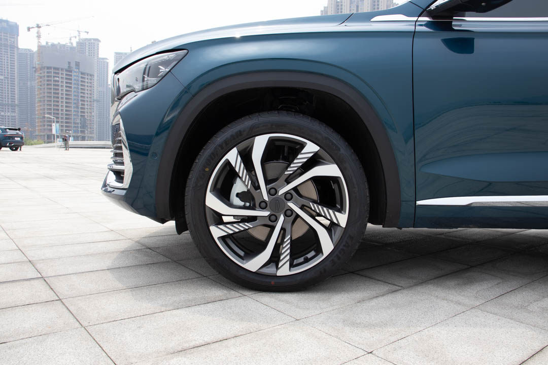 20寸的刀锋式轮毂显得十分饱满,实拍车辆轮胎使用的是固特异EAGLE F1 ASYMMETRIC 3 SUV,尺寸为245/45 R20。
