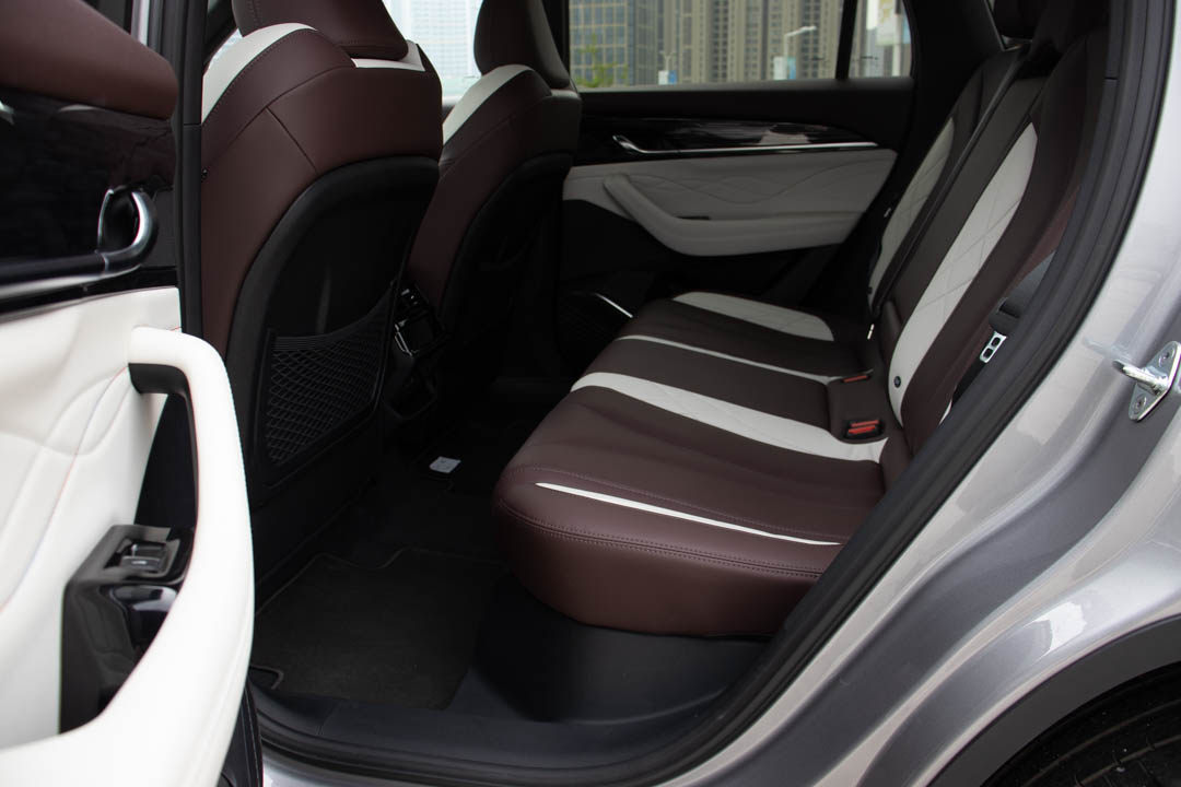 不过对于大多数用户而言,这样的空间已经很出色,腿部空间超过了2拳,而且座垫足够长,填充物也是比较软的,靠背角度可以调节,后排整体乘坐感是比较好的。