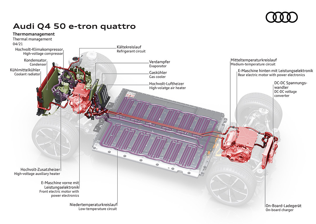 来到动力,Q4 e-tron系列将会配备三种动力版本,它们被分别命名为35 e-tron、40 e-tron和50 e-tron quattro,35 e-tron为后置永磁同步单电机,驱动方式为后置后驱,最大功率125kW(170Ps),峰值扭矩310N·m,百公里加速9秒,搭配52kWh的三元锂电池组,WLTP工况下的续航里程为341km(标准版)和349km(Sportback)。