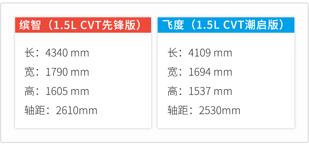 那么我们不妨先从看看双方的车身尺寸数据,缤智长宽高分别是4340*1790*1605mm 轴距为2610mm(2020款 1.5L CVT先锋版),而飞度的尺寸则分别是4109*1694*1537mm,轴距2530mm(2021款 1.5L CVT潮启版)。从数据上看,整体都要比飞度大上一圈,因此,他较为看重的是缤智大空间较大的特点,装载能力强是首要诉求。