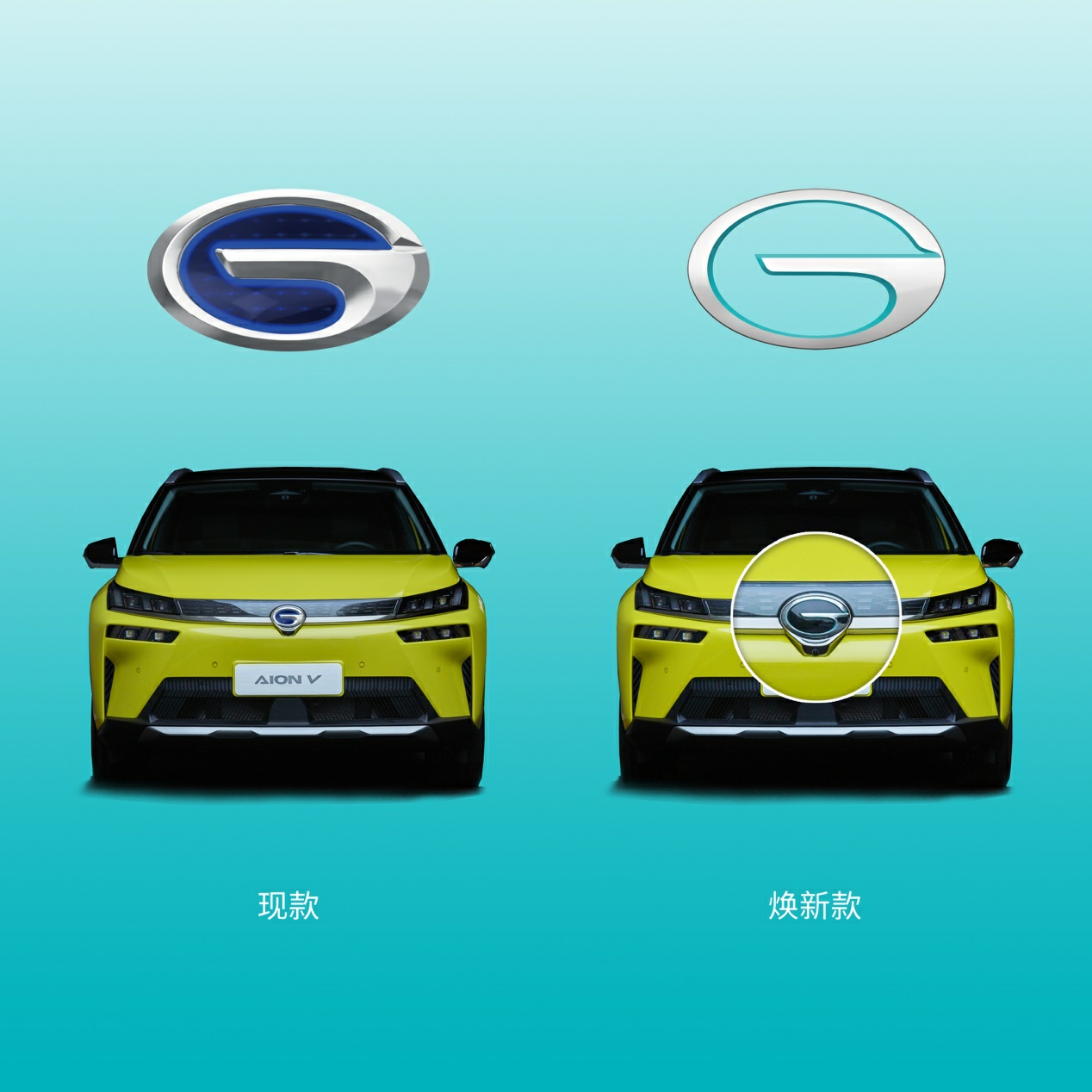 另外,从车身外观上还可以看到一些明显的变化。其中,车头部分,与原有的“G”标LOGO相比,全新的“G”字标识采用高明度、扁平化的轻盈设计,更贴合数字化时代符号的同时,质感如钛金般通透,“G”字内圈搭配一抹亮眼的“AION蓝”色调,犹如驭风展翼,也寓意电引新生。
