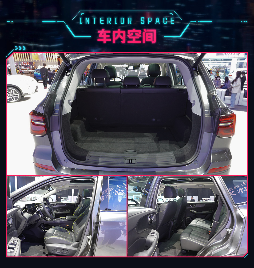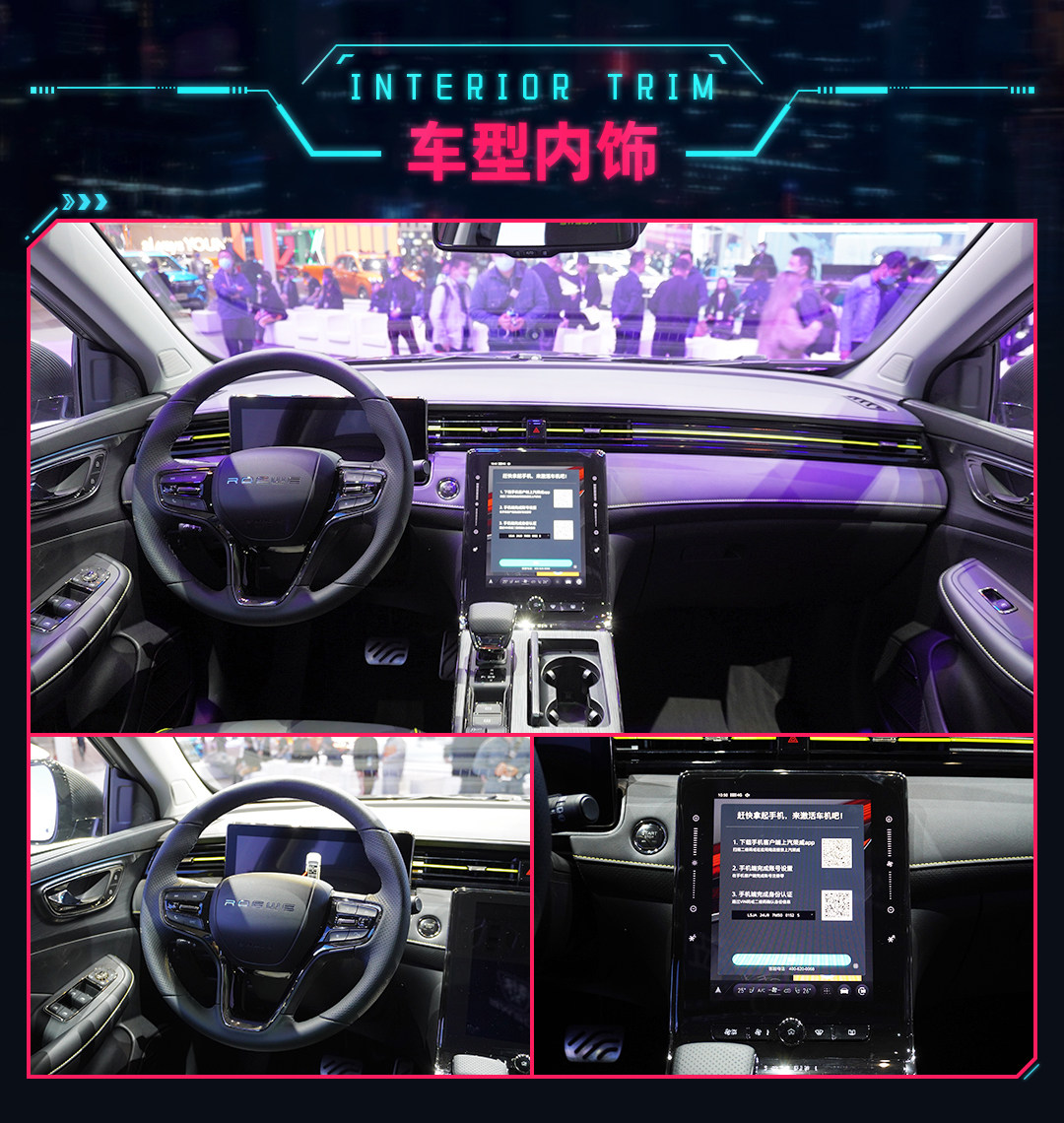 中控台、座椅上都有与外观呼应的荧黄色装饰,增强车辆的时尚感。此外,座椅面料有所调整,同时在座椅上半部分使用黄色线条勾勒出《千里江山图》,完美将国潮融入到现代化汽车中。