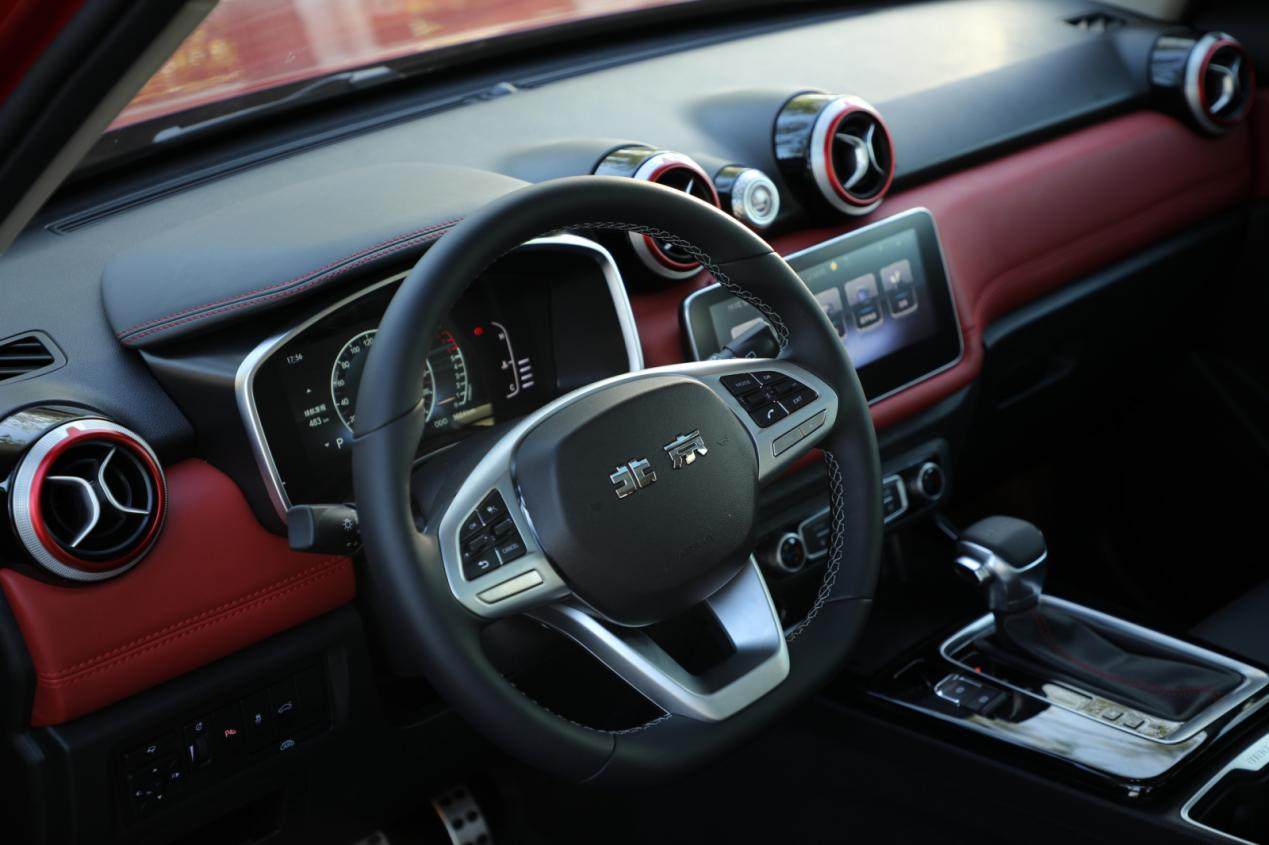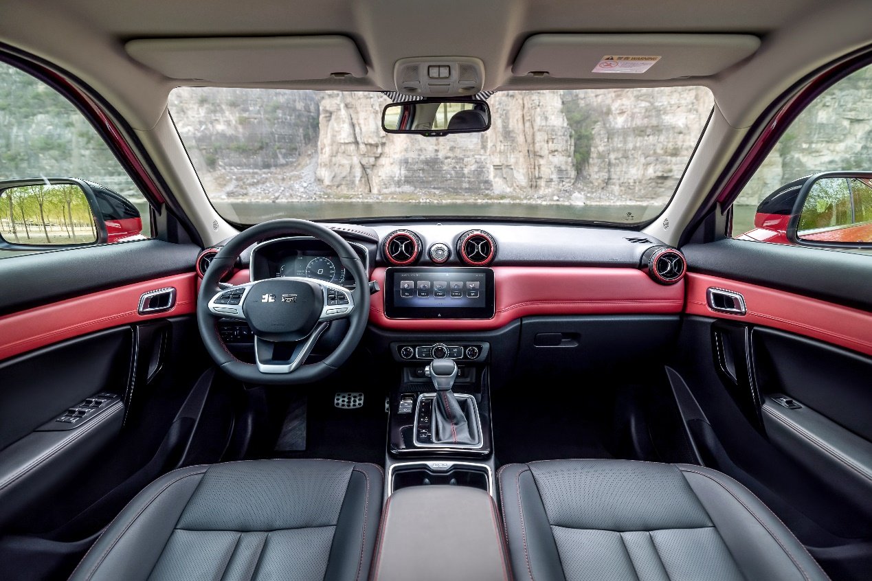 在内饰设计上,BJ30“小战狼”同样遵循家族化设计理念,强调“外方内圆”、“硬视觉,软触觉”的设计感知。仪表台、门板饰条上大面积软性皮质包裹增加驾乘舒适质感,支持记忆、迎宾、通风、加热,电动调节的多功能真皮座椅,加上同级少有的智能电动尾门,极大提升驾乘品质。