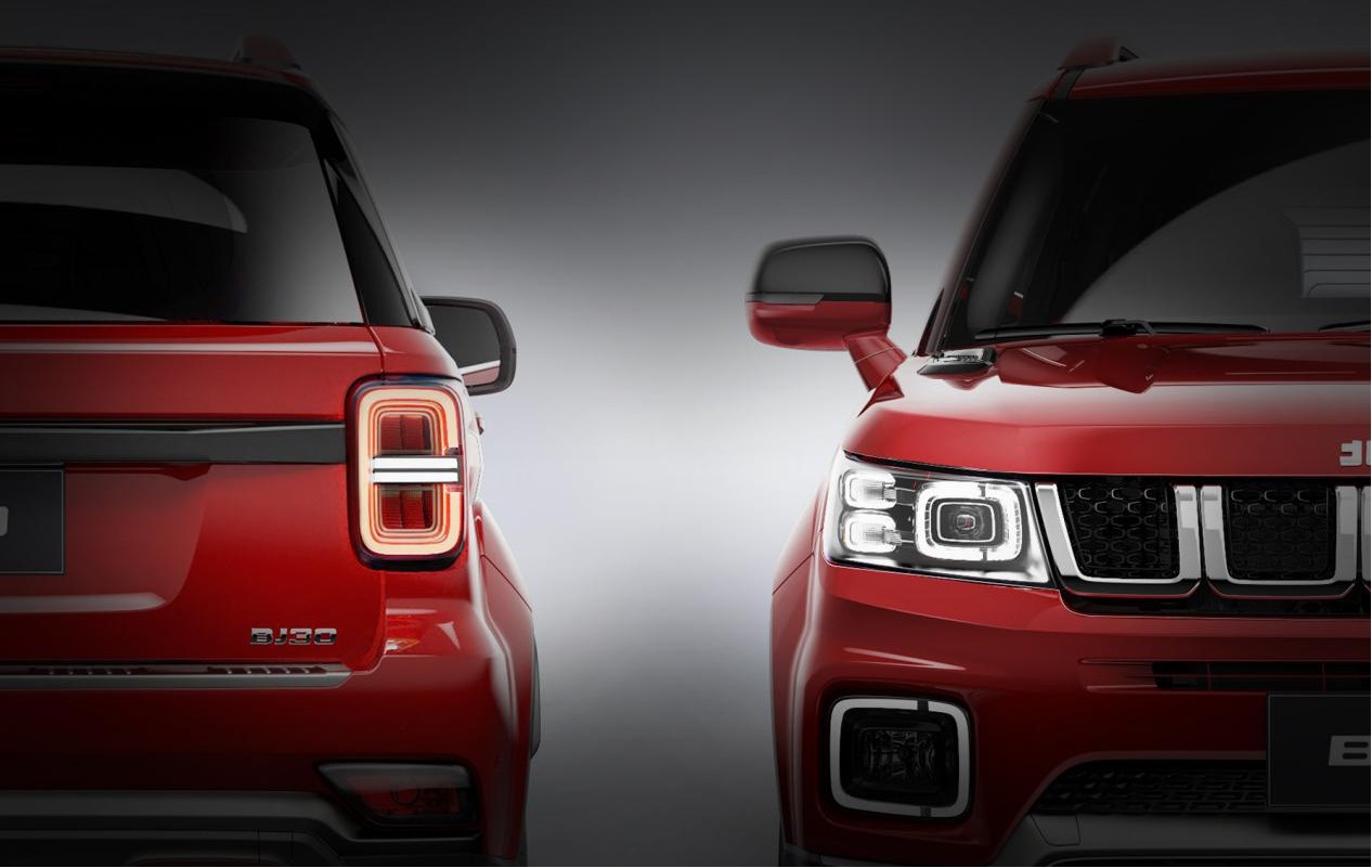 独特的黑色轮眉、侧裙、前后保的保护套件点缀,丰富了造型设计的层次感,增强整车精致属性与城市化元素,也维持了应有的越野属性。同时在年轻化、时尚感等方面也有着显著提升,整体外观与BJ40神似却又独具个性,硬派却又不失精致特质。
