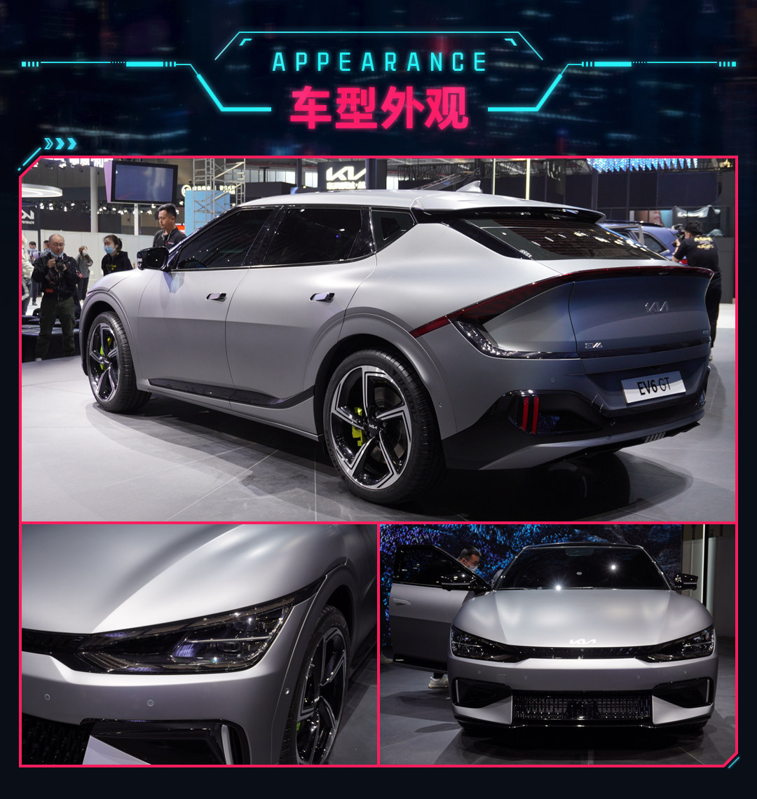 起亚EV6的定位是一款紧凑型纯电动轿车,溜背式的车身造型确实有着科幻电影中汽车的味道,也有着极强的跨界效果。而除了流线型的设计外,多种科技感元素的搭配才是构成了EV6高颜值的原因。