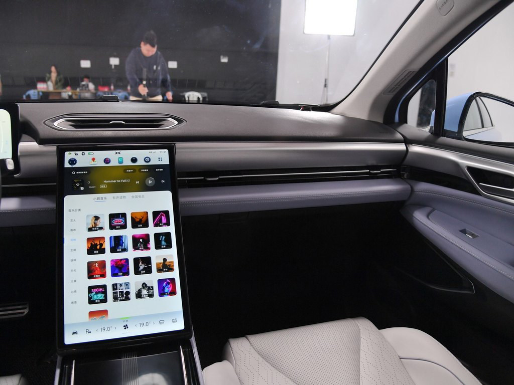 在简洁的车内,最大的亮点无疑是超大尺寸竖式中控触摸屏,这也是首款搭载了基于Xmart OS 3.0系统为核心的交互座舱车型。