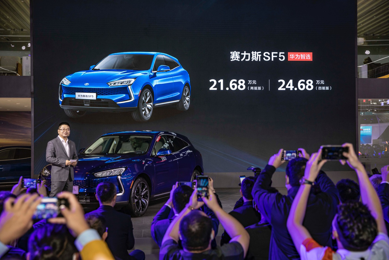 【2021年4月19日,上海】第十九届上海国际汽车展览会上,赛力斯与华为正式达成深度合作,双方将在技术,产品和渠道三方面深度融合,相互赋能,为用户提供高性能、智能化的移动出行解决方案。发布会上,由双方联合打造的赛力斯华为智选SF5正式上市,新车将于4月21日起,在赛力斯体验中心、赛力斯官方APP、华为体验店、华为商城同步开启预订。