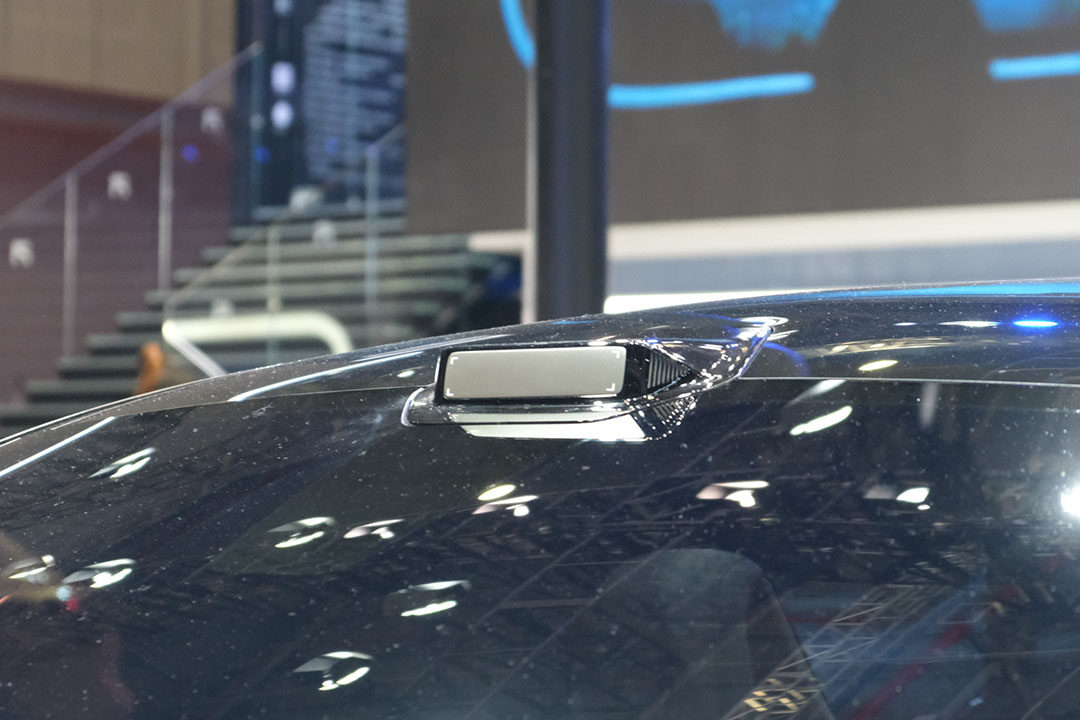 而全车最值得关注的就是位于车顶和车头的各种摄像头。其中车顶的搭载了全球首发量产的Luminar激光雷达,探测距离可达500米,能够生成精细的三维立体点云信息;再比如车头下方的PREMIUM 4D成像雷达,据悉是中国首发,精确到连140米以外的可乐罐都能探测到。