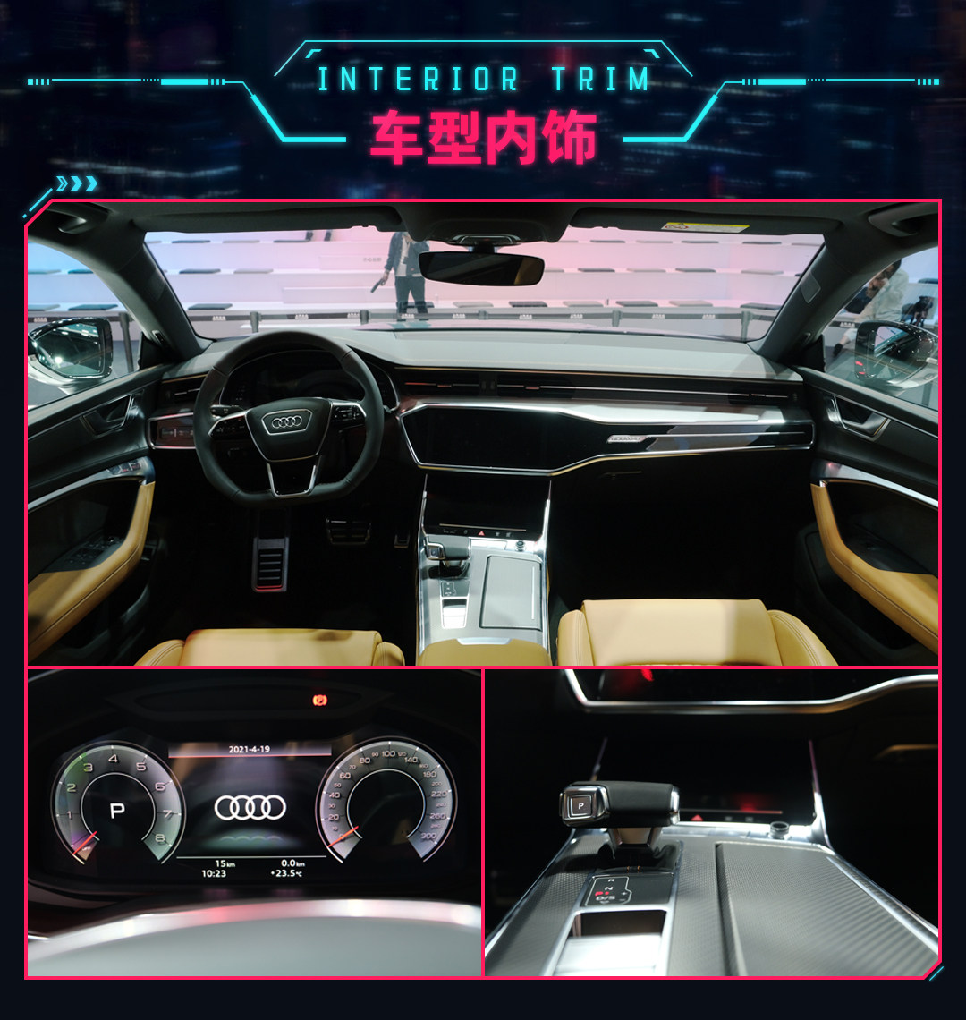 展出车型搭载的是一台3.0T V6发动机并且加入了48V电机的轻混动力,最大功率为340Ps,峰值扭矩为500N·m,虽然目前还未透露其匹配的变速箱信息,但基本可以推测是匹配7DCT变速箱。