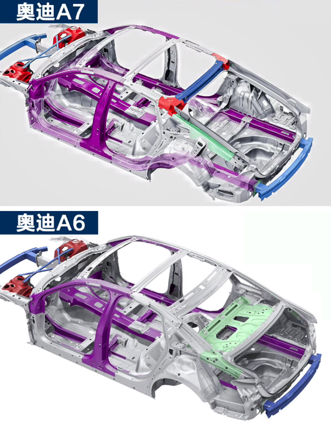 其实进口版奥迪A7由于掀背车结构上缺少车厢隔断和尾箱横梁,车身刚性会略逊色于同级别三厢车。但奥迪A7在车身顶梁、C柱和连接件上下了血本进行加强,同时还加了车底支撑杆,不惜花大价钱来弥补车身刚性也要追求极致的设计美观,是A7的一大特色。而国产后的A7L从实用性和车身强度方面考虑,重新采用三厢设计,并且轴距的加长也带来了更高的实用性,更多还是让奥迪A7这款大玩具在保留个性和可玩性的同时,拥有媲美国内市场主流中大型轿车的水准和实力。