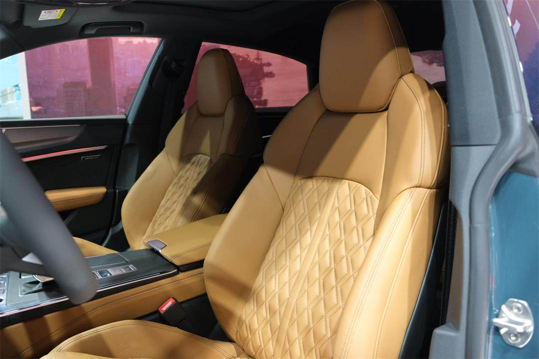 而为了突显自身的运动和轿跑定位,在座椅方面A7L相较A6L会有明显区别,一体式的运动座椅在两侧更强调包裹性并采用了菱形纹路的缝线设计,同时座椅功能上也同样带有腿部支撑调节。