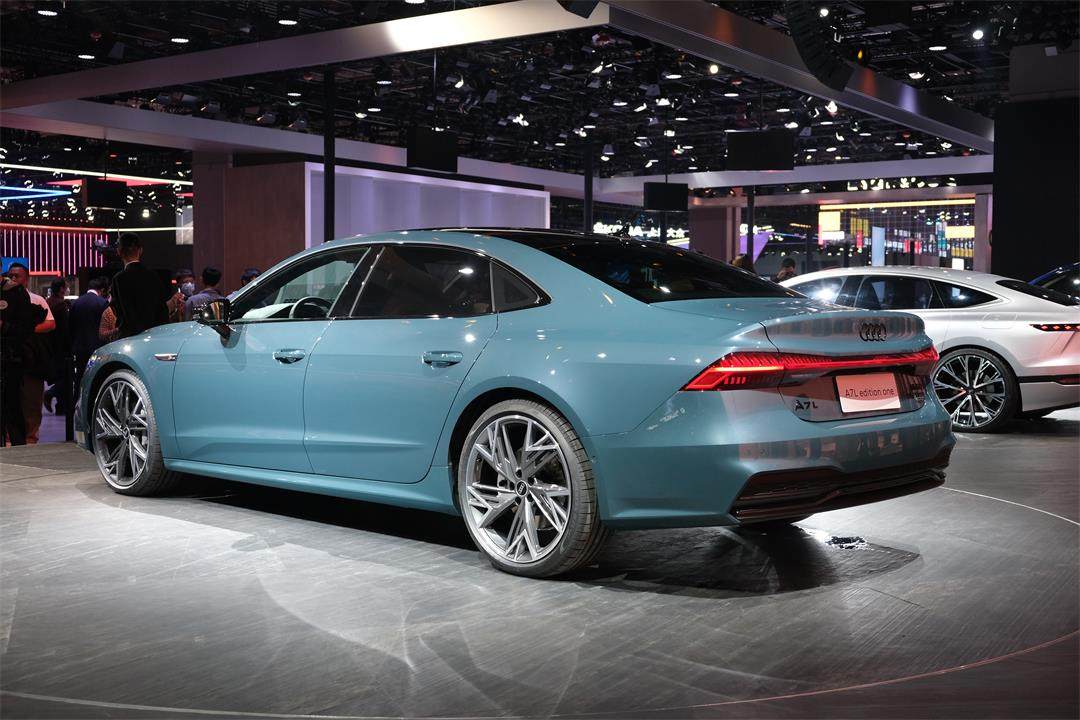 A7L的车尾部分沿用回三厢版的车型设计,虽然溜背式造型和升降尾翼的设计被取消,但A7L硕大的进气格栅、夸张的轮毂设计以及修长的车身造型,整体风格依旧给人一种四门轿跑的味道。同时值得一提的是,A7L除了加长外也同样引进了一些新技术,除上文提到的激光大灯外,空气悬架和后轮转向等都将会对车辆驾乘方面有很大帮助。