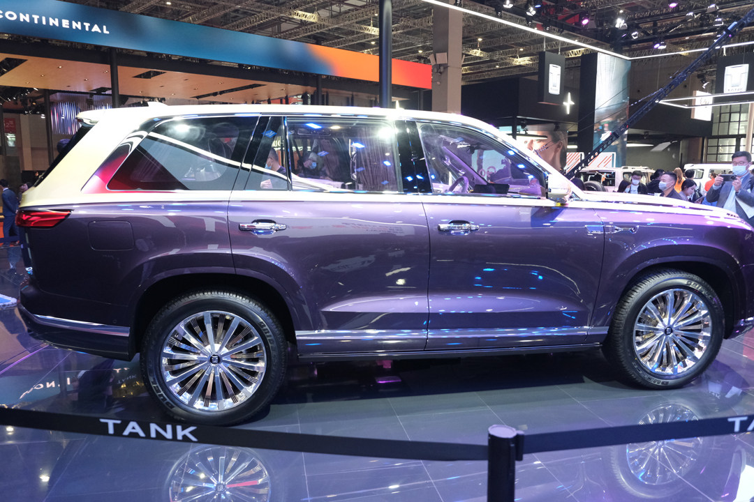 由于坦克800定位豪华感,所以车身侧面没有坦克700般“硬桥硬马”,豪华车主要是气质上的提升,多辐式的镀铬轮毂同样给你豪华方面的想象。