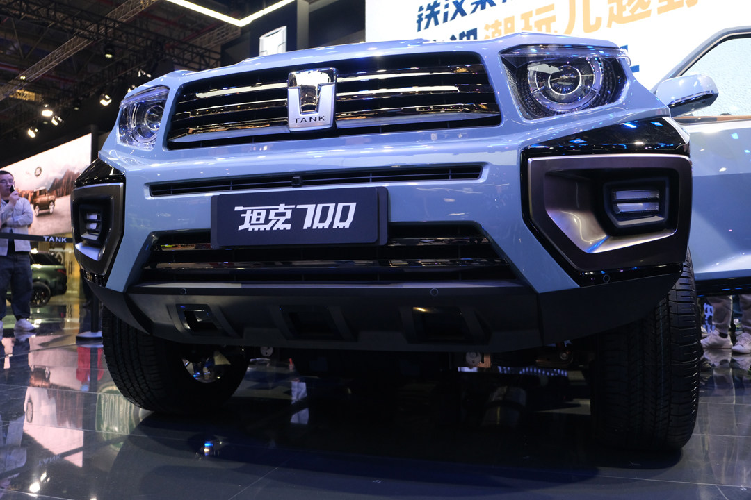 相比起坦克700的硬朗风格,坦克800主打豪华感。在车头部分,该车使用直瀑式中网,中网造型四方四角,一切都以豪华为主要目的。头灯虽然使用圆形的日间行车灯,但是整体造型相对方正,从坦克家族的设计中升华而来。