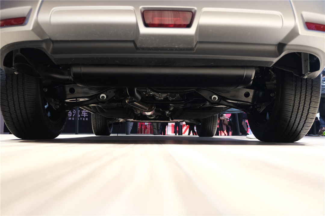 视线下移,硕大的银色护板配合黑色防擦板,彰显出作为SUV的野性,也提高了车辆的防刮擦能力,此外排气管采用了隐藏式布局,让车尾变得更加规整。