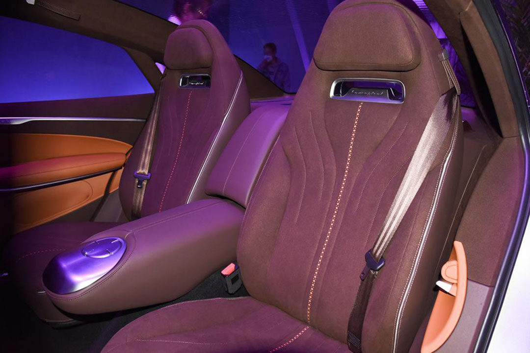 由于展车为四座版本,无论是纵向还是横向的空间都非常宽敞,并且顶部采用了大面积的玻璃,整体的开扬感是非常不错,坐在后排也不显得压抑。座椅与前排相同,也是采用了一体式的座椅。