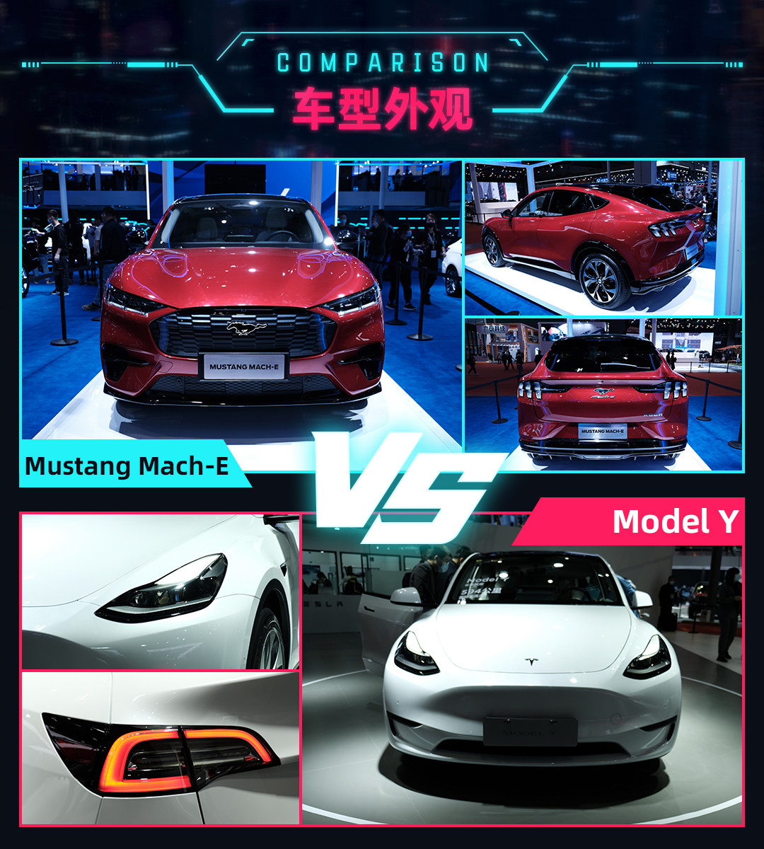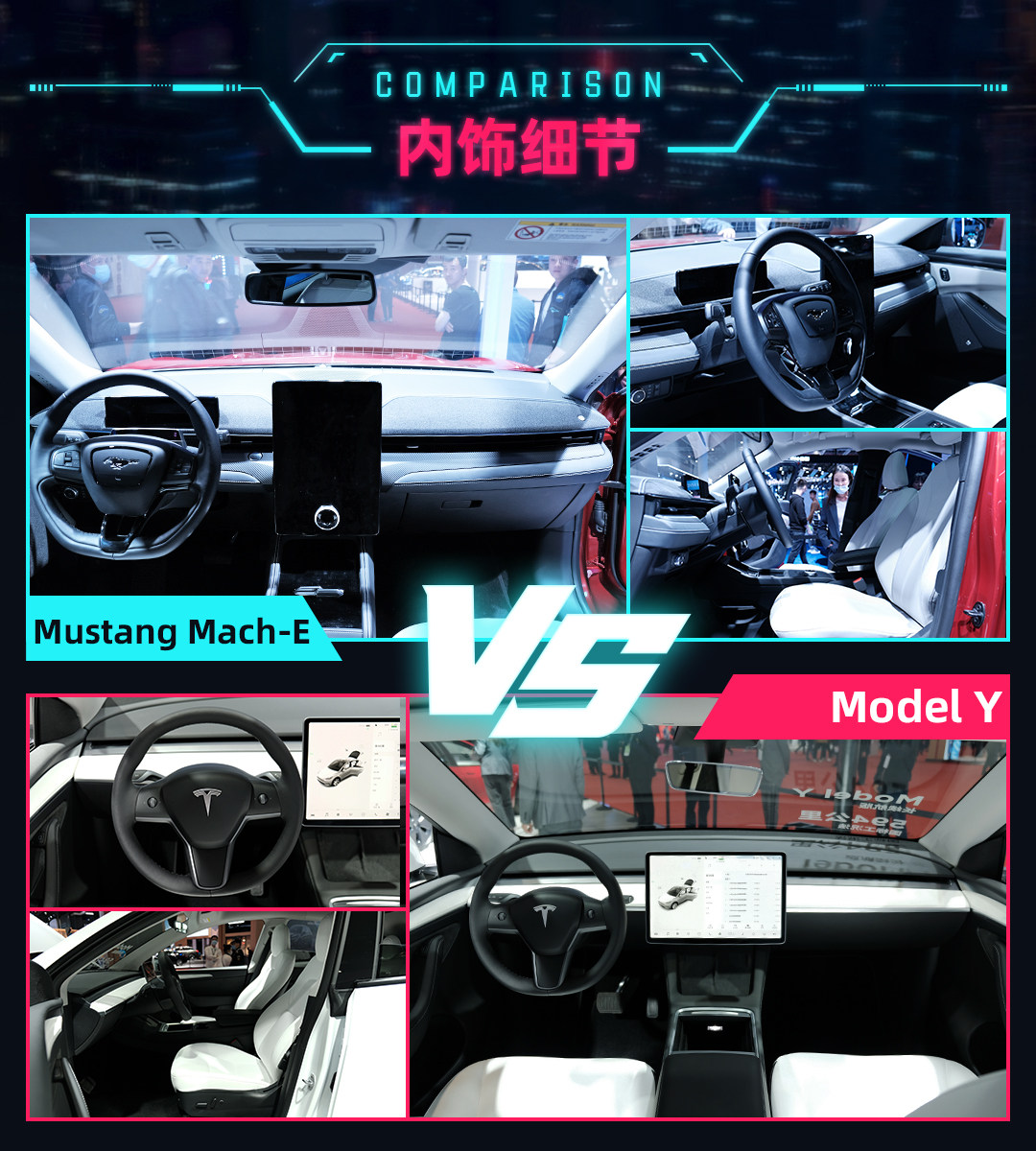 设计上来看,Mustang Mach-E明显更加具有家族味道,车辆明显更具传承性。而Model Y更像是一台横空出世的车辆,到底是初生牛犊不怕虎的Model Y够科技范还是历史传承深厚的Mustang Mach-E更好看,这就要看你们的评价了。