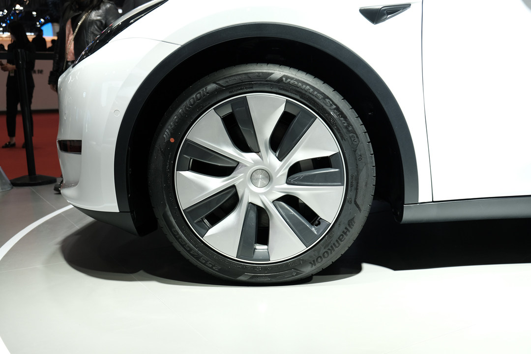 Model Y根据不同的车型会配备不同的轮胎,配备19英寸的车型会使用韩泰的VENTUS S1 evo3 EV,这款专门为电动车打造的轮胎,上面还有“TO”特斯拉专供的标识,尺寸为255/45 R19,耐磨指数达到340,这款轮胎的优点在于抓地力方面,而短板在于噪音控制层面。