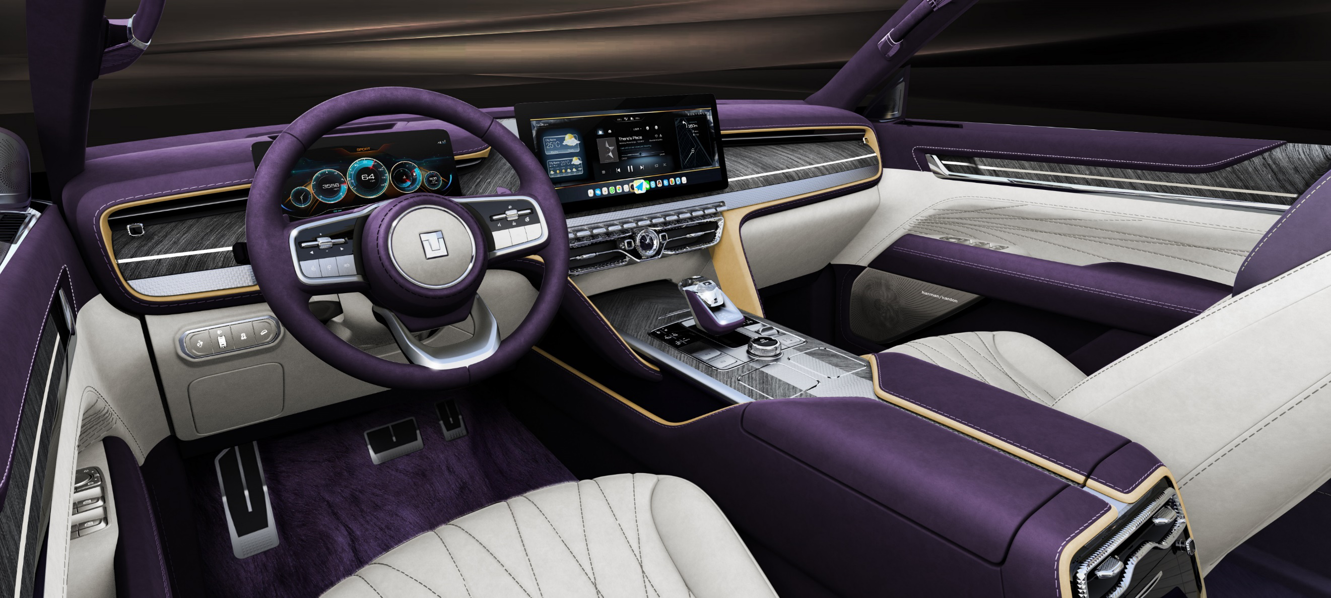 来到座舱内,内饰设计借鉴了中国传统建筑“对称“的手法,仪表板的布局设计灵感来自于中国的“中”字,以对称优雅的灵动曲线与型面为设计主体,融合高科技配置以及彰显品质的水晶、金属、木制配饰及柔软丝绒,打造奢华、舒适、灵动的内部空间。同时,在选材和细节处理上,无不体现精雕细琢的匠人精神。