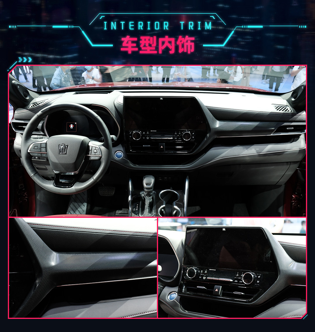 在内饰部分,皇冠陆放和海外版的汉兰达XSE一样采用了与汉兰达基本一致的内饰设计,包括有一个非对称造型的中控台,通过飞翼状碳纤饰条强化层次感,同时在饰条下方分别设计了两个方便实用的狭长储物格。