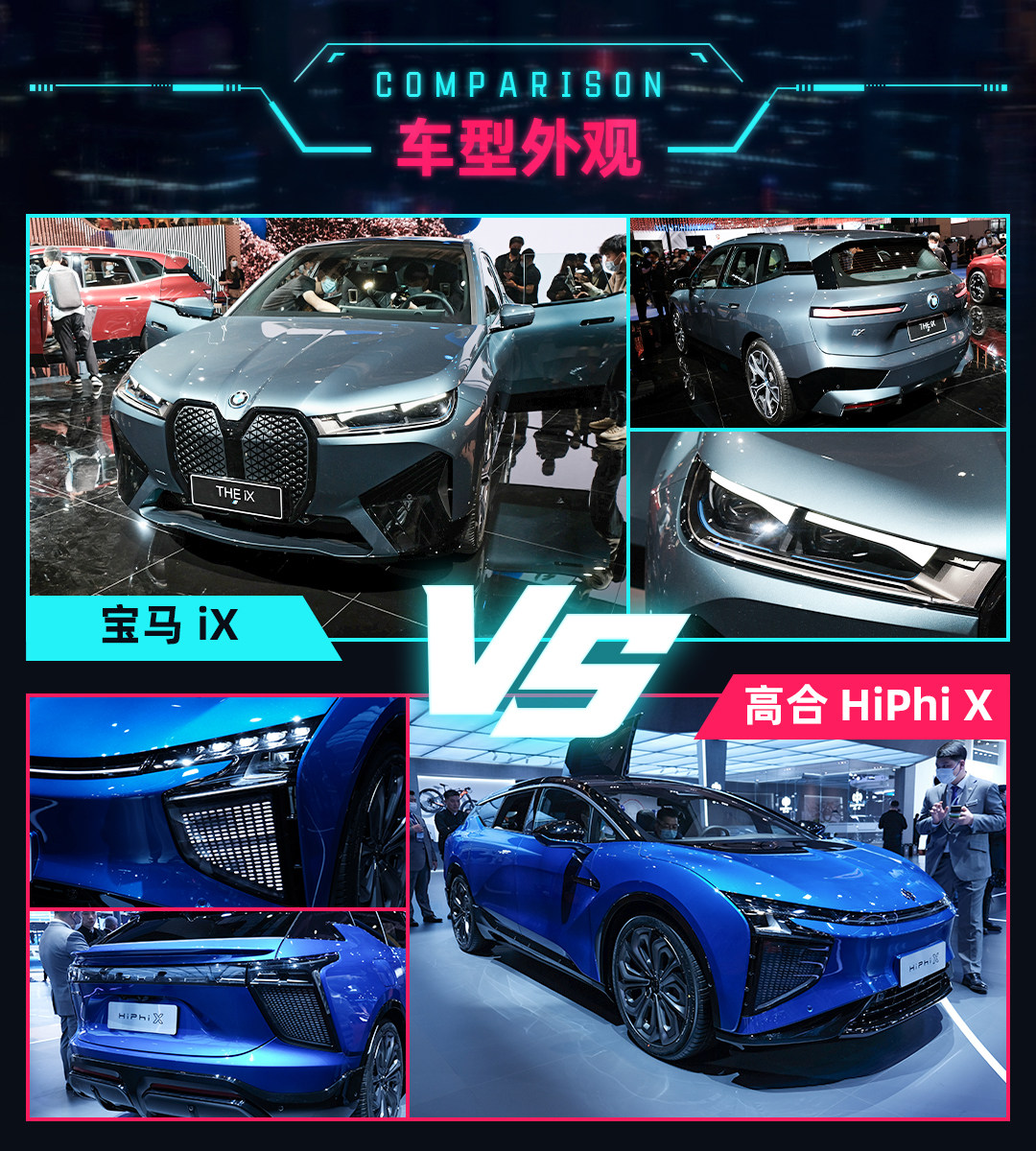 至于由新势力品牌推出的高合 HiPhi X,由于不像宝马那样具有品牌经典形象的“束缚”,因此外观设计显得更加大胆。除了十分低矮、修长的车身之外,高合 HiPhi X还装备了非常先进的LED大灯系统,其前后大灯甚至支持表情、文字等信息显示,使这款车型看上去极具数码感和未来感。
