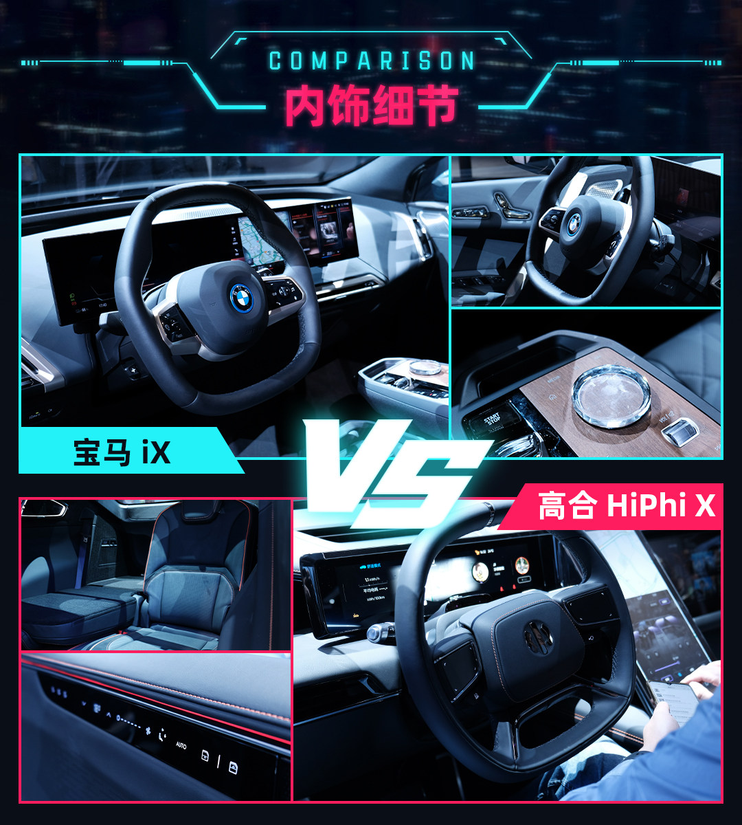 不过,相比于外观,宝马iX与高合HiPhi X之间最能体现设计风格差异的就是内饰部分。