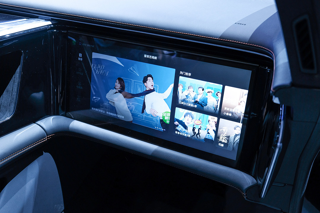 这套由三块大屏组成的车机系统具有相当丰富的智能应用,功能之多甚至导致菜单设计太复杂,需要较长的时间适应才能快速找到自己想要的功能。而副驾驶前方的19.9英寸大屏则可用于播放各式各样的影音娱乐内容。