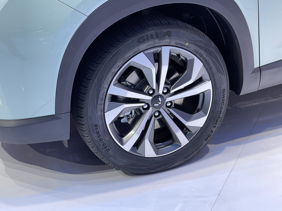 轮胎使用215/55 R18的佳通ComfortF50 advanztech轮胎,轮胎主打静音耐磨,市场价格大约800元/条。18英寸的双色轮毂视觉效果不错,亮银色和灰色的搭配配合上中央银色五菱logo,高级感和实用性做到不错的平衡。