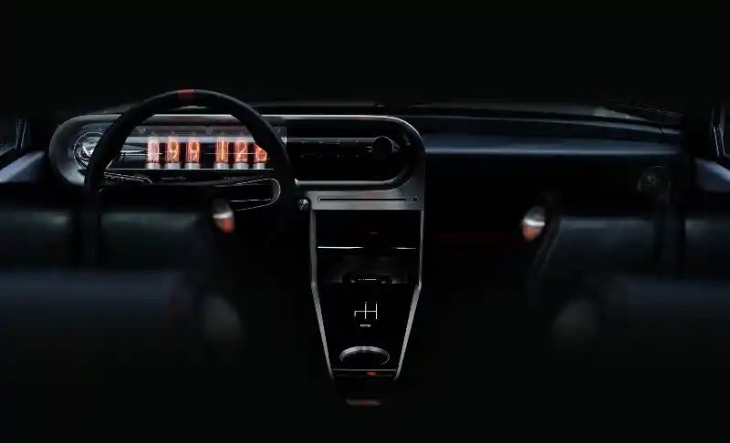 如果说外观是复古的,那么Pony的内饰便是未来。现代对Pony EV内饰进行了全面的科技化升级,最有特色的就是在贯穿式的仪表盘框架内,安装了六组辉光管,左侧三枚显示电量,右侧三枚显示车速。这样的仪表设计,是任何车都从未有过的!