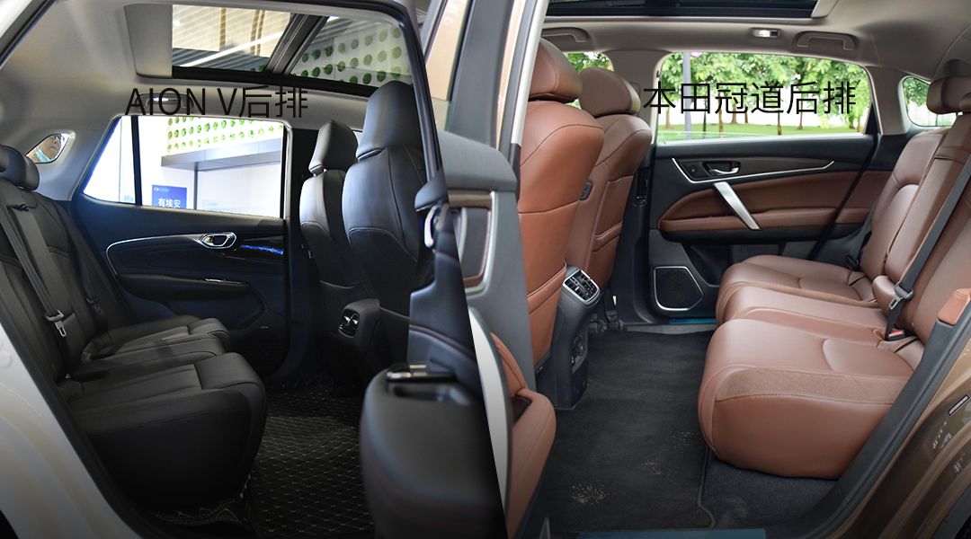 当然买买君可以通俗易懂的讲:AION V的后排空间基本与本田冠道不相上下,本田的魔术空间造诣不用过多描述了,是其看家本领,所以可见AION V空间之大。