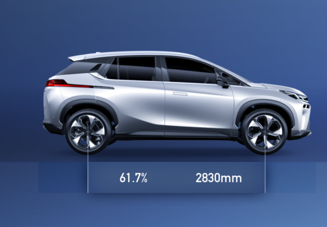 除此之外,纯电平台下的车型,空间利用率也更好,AION V虽然定位为紧凑型SUV,长宽高分别为4586*1920*1728mm,但其轴距达到了传统中型SUV的标准,为2830mm,比目前在售的汉兰达(2790mm)还要大。