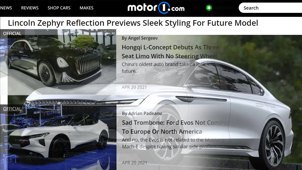 而更“舒坦”的是,各大海外媒体争相报道上海车展新车的这一举措,这些报道不乏中国品牌新车,例如红旗全新概念车、上汽荣威鲸等。当然,像福特EVOS、林肯全新概念车等这类仅会在中国或少数市场发布的车型,更是让他们羡慕不已。