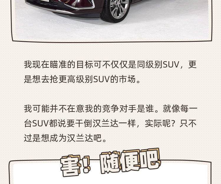 我感觉汉兰达外观线条比他大方很多