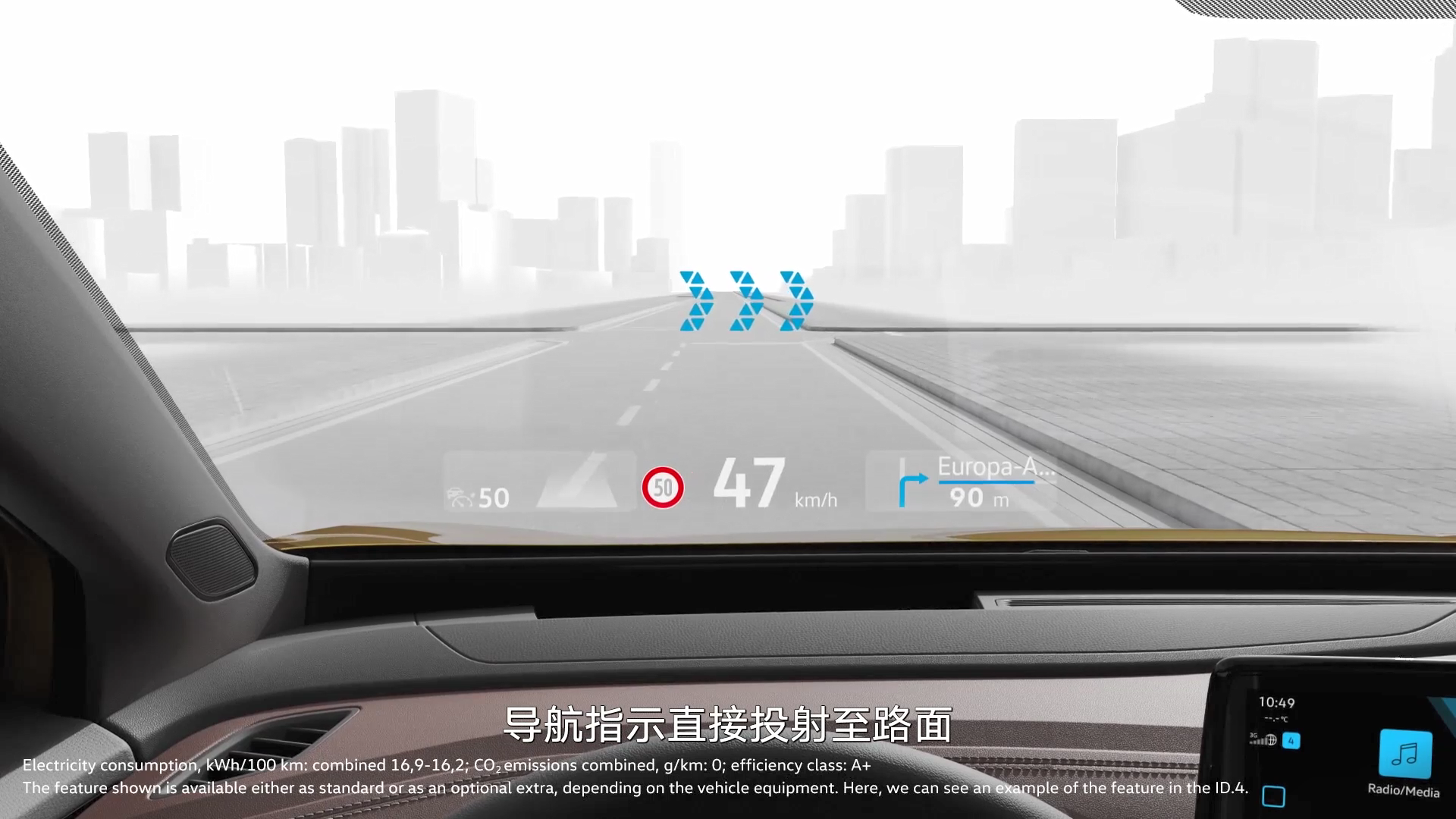 这两款车型都搭载了大众推出的增强现实抬头显示系统,显示信息悬浮于前挡风玻璃的底部。