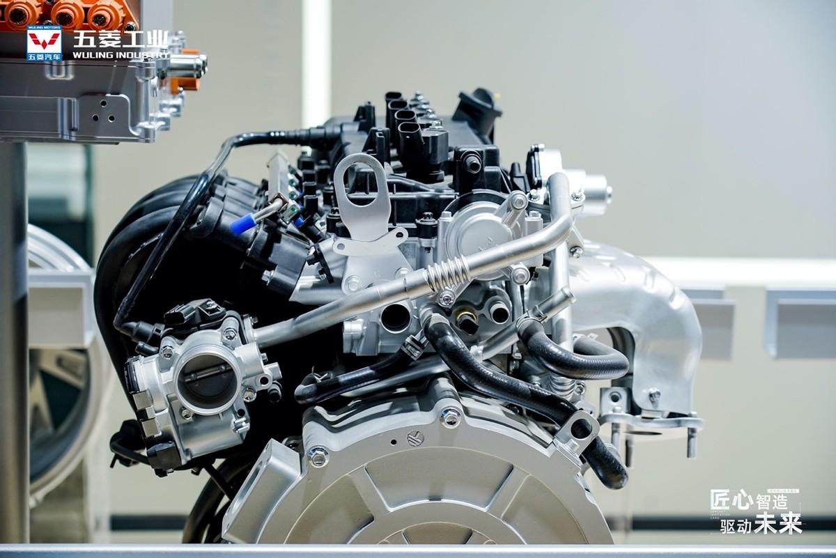 其中,五菱工业自主研发的“菱擎”前置后驱混合动力系统最受关注,其中包括了1.6L 四缸阿特金森循环发动机,发电机与驱动电机、动力电池,以及高度集成化的动力控制系统与电池管理系统。
