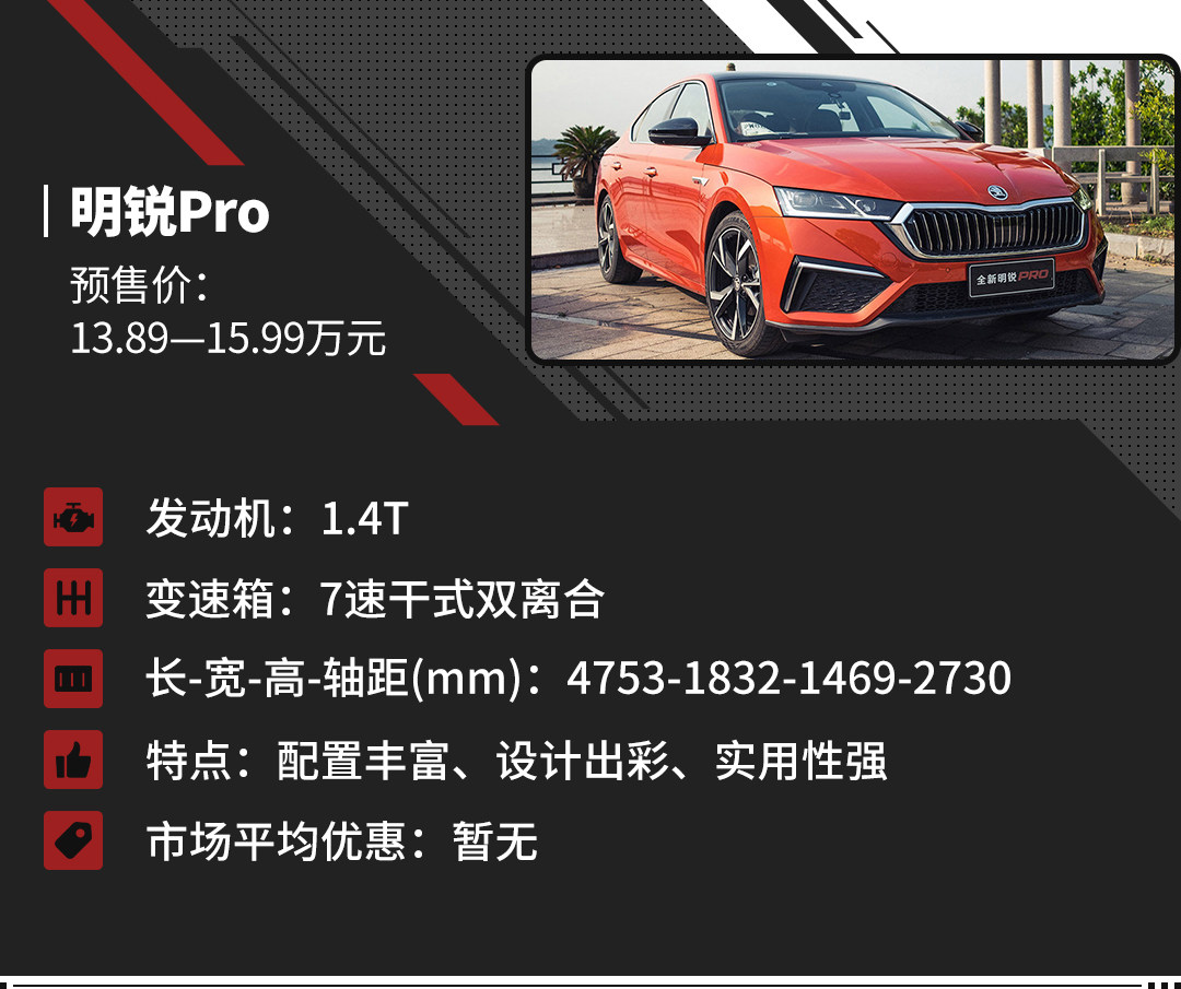 现阶段能够和思域形成对抗的车型,可能新上的明锐Pro算一个,新款车型刚刚开启预售,13.89—15.99万元,正式上市价可能会有一定的下降空间,所以16万不到就能买到,跟思域比起来,起码可比性强很多,性价比也强很多。