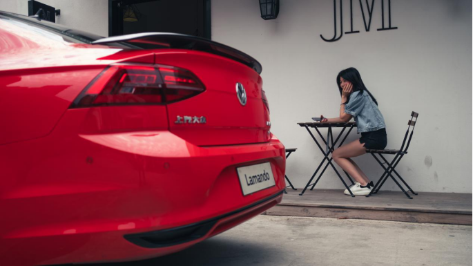 这里属于园区新开发的一边,各种精致的小店随时都能产大片,恰巧浅色系外墙搭配上凌渡的炙热红车身,简直自带光环。