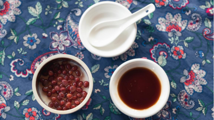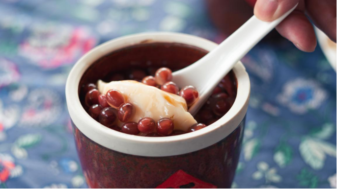 “源于传统而又突破传统”就是对这碗豆腐花的正解。它在传统的豆腐花基础上,加入了这种红色的“爆珠”,豆花入口即化,红豆爆珠则有一种“爆浆”的感觉!据说此配方来自澳门一位专注烹饪三十载的美食泰斗。