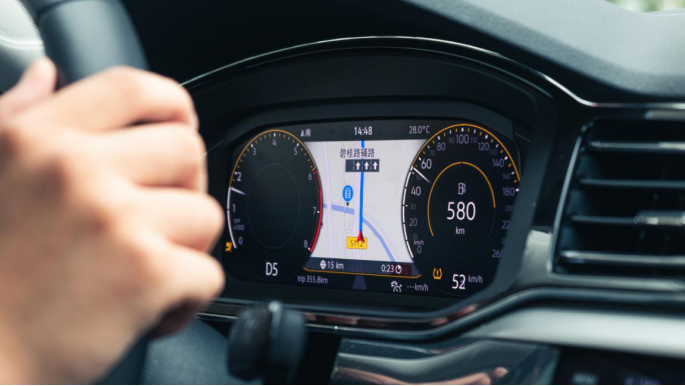 下午时分车逐渐多起来了,本为我播报路线的她说要歇一会,所以为了集中注意力,我将导航直接映射到仪表盘中央,这样能更方便看路线。